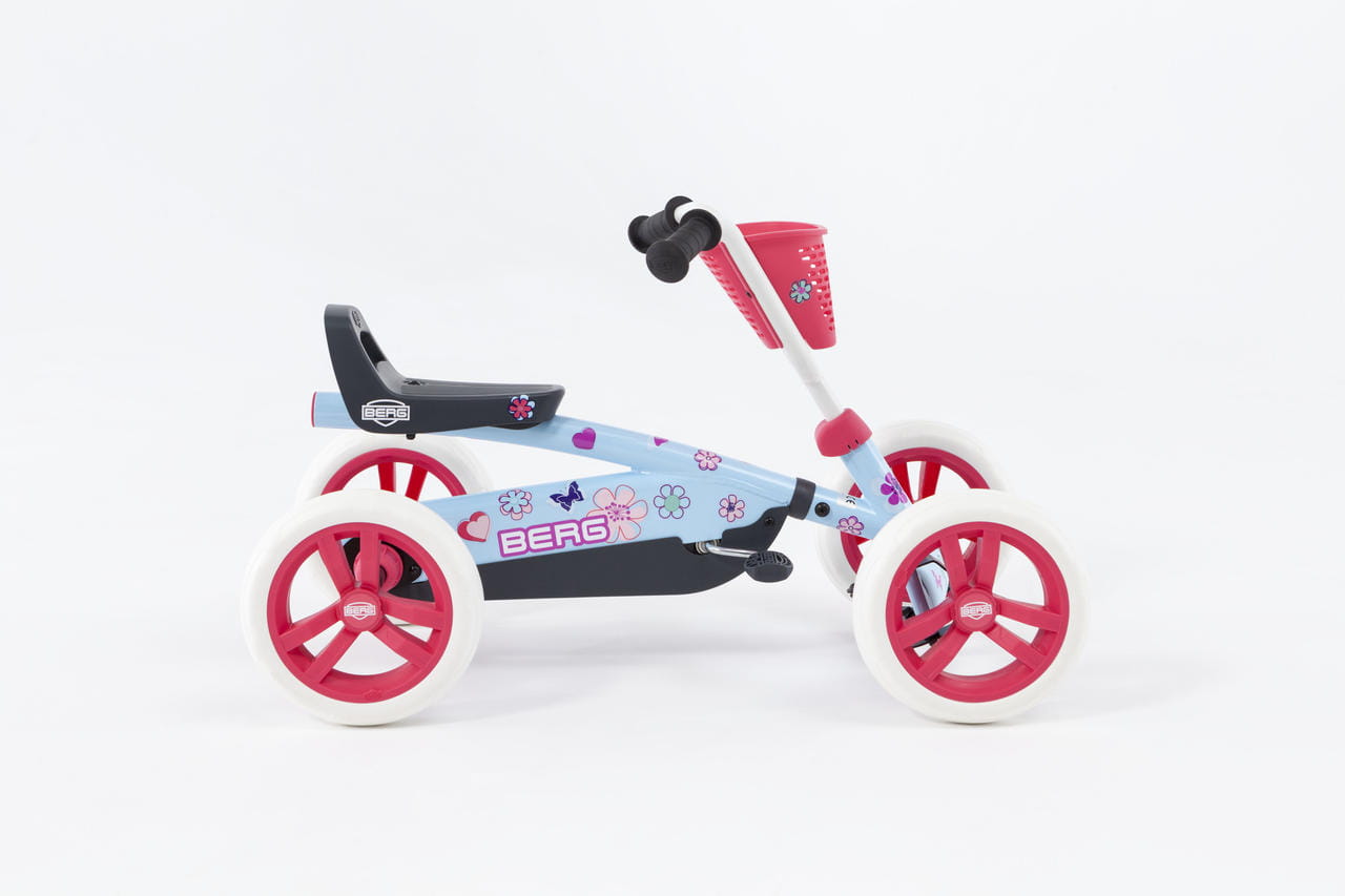Szukasz pierwszego gokarta dla swojej pociechy? BERG Buzzy Bloom to stabilny, bezpieczny i wyjątkowo stylowy gokart na pedały, który sprawi, że Twoje dziecko zakocha się w jeździe od pierwszego przejazdu! Dzięki czterem kołom jest znacznie bardziej stabilny niż tradycyjne trójkołowce, a ergonomiczna konstrukcja zapewnia komfort i pełną kontrolę nad pojazdem.