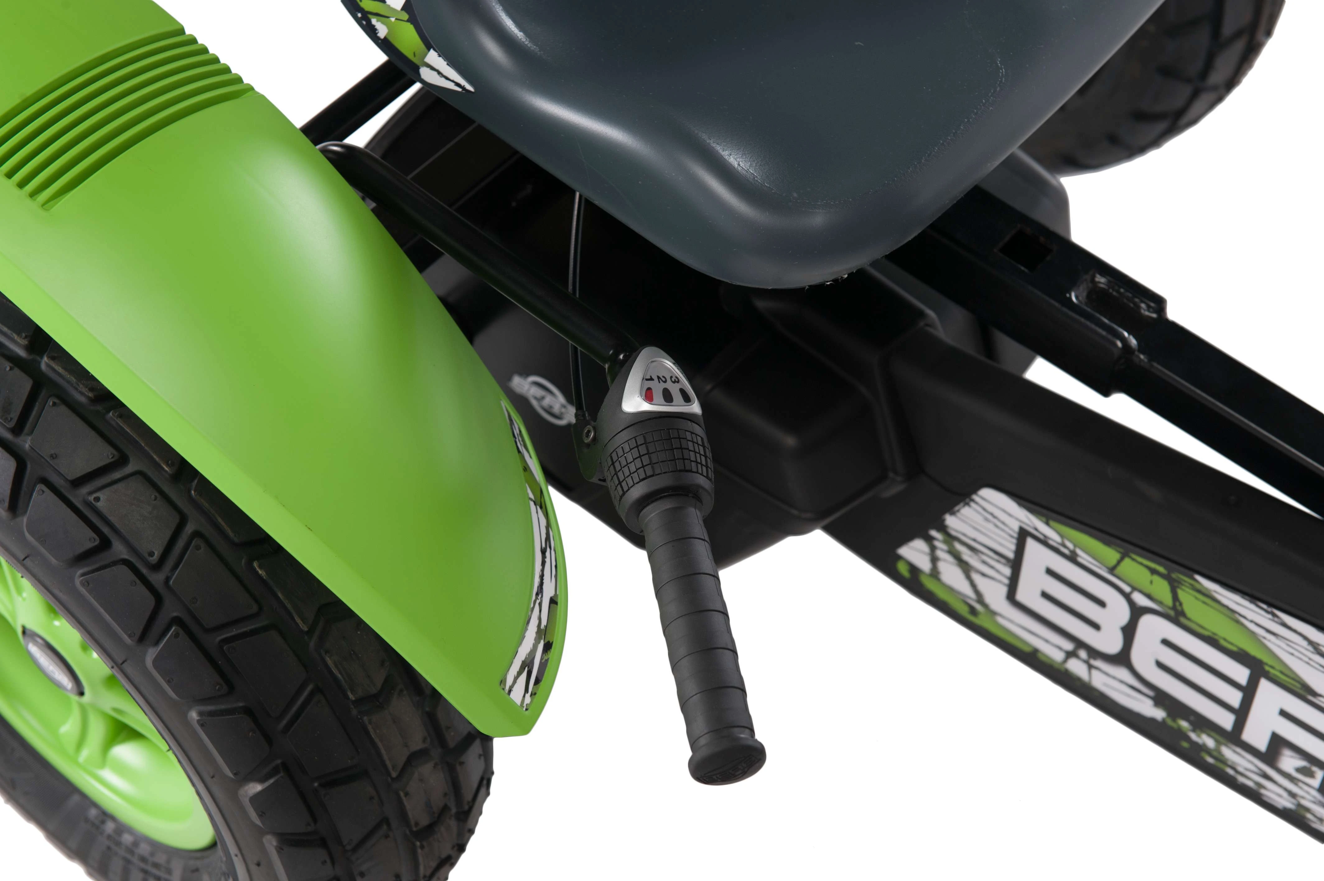 Model BERG X-Plore to gokart zaprojektowany dla miłośników jazdy w terenie. Charakterystyczna kolorystyka w odcieniach zieleni i szarości oraz terenowe opony nadają mu sportowy, przygodowy wygląd.