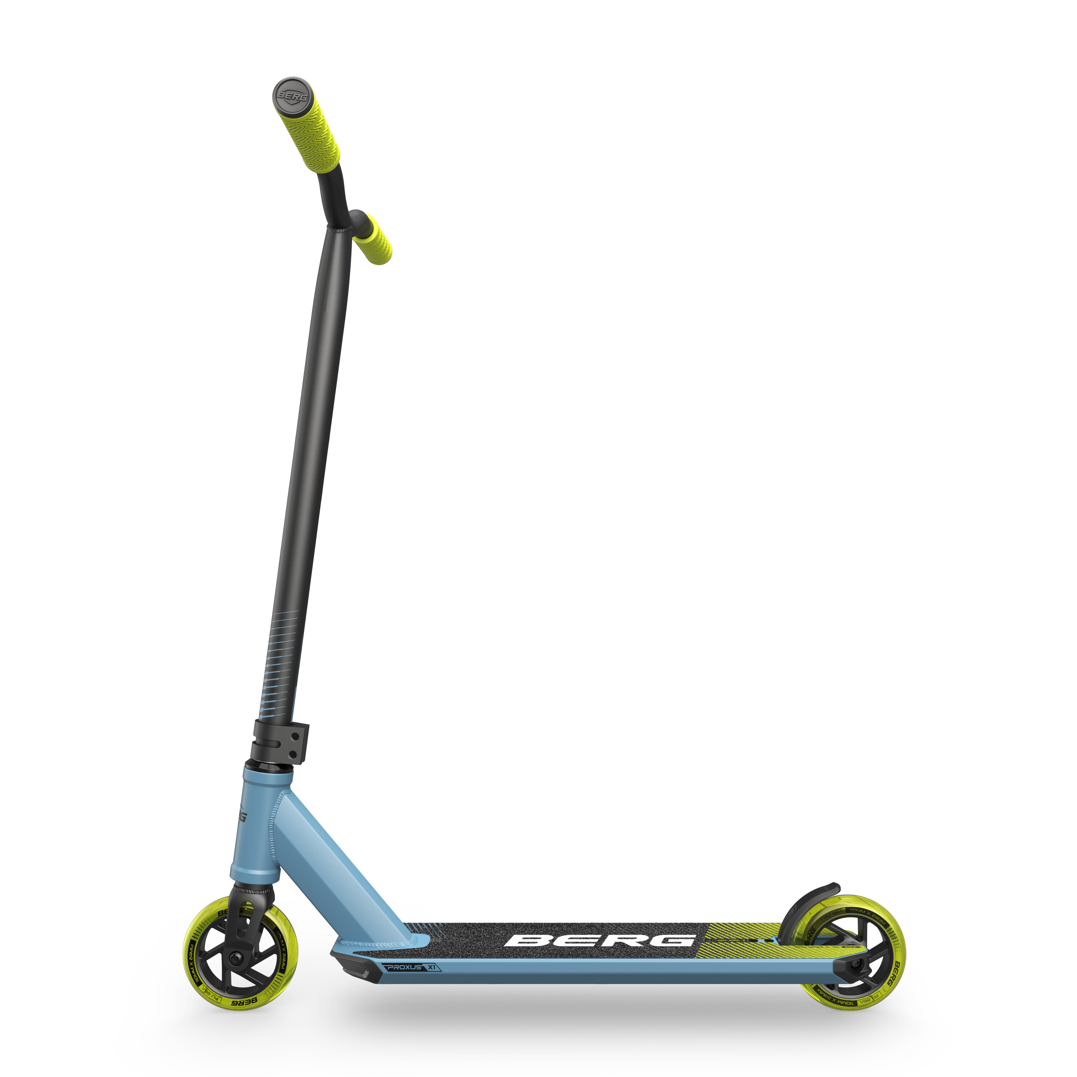 BERG Proxus X1 Blue/Lime to lekka i wytrzymała hulajnoga wyczynowa dla dzieci od 6 lat. Idealna do skateparku i jazdy freestyle, zapewnia świetną kontrolę, trwałość i sportowy wygląd. Doskonały wybór dla ambitnych młodych riderów.