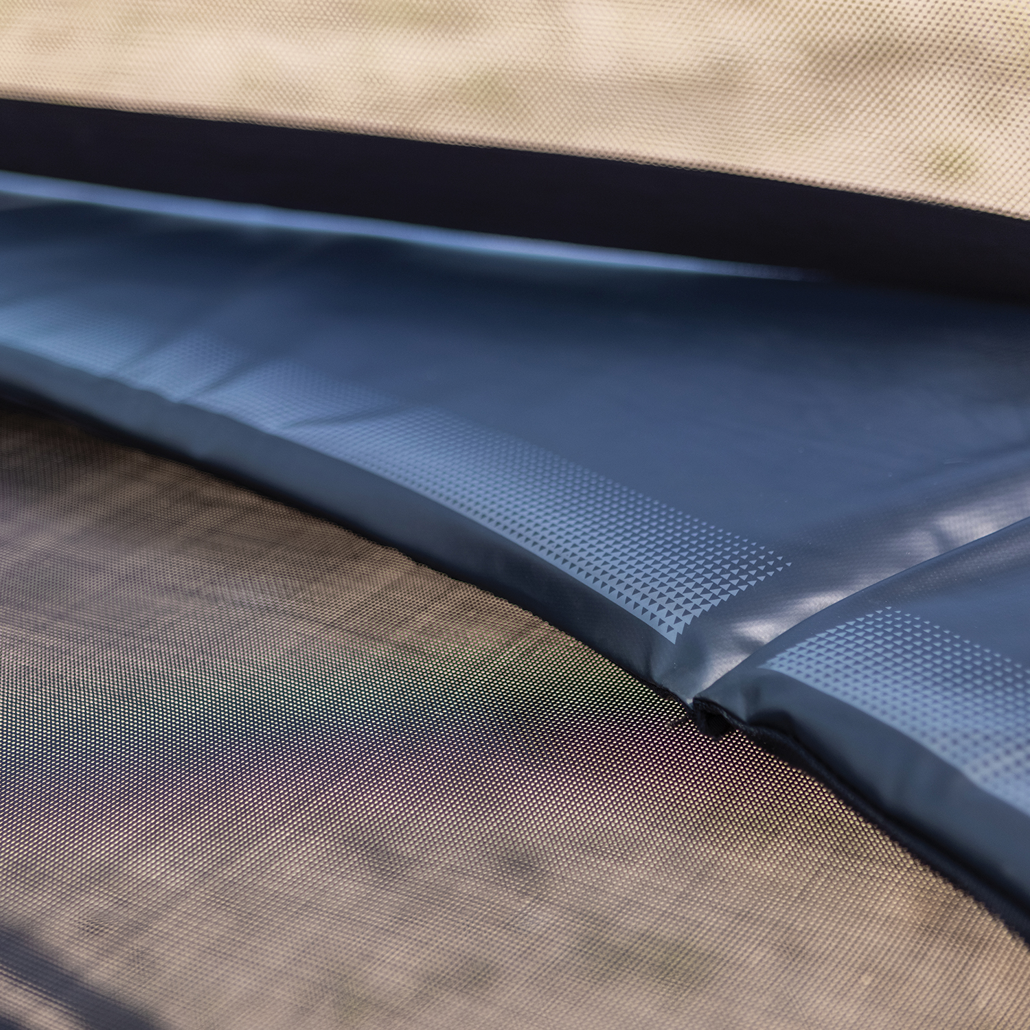 Osłona skutecznie zwiększa bezpieczeństwo przy lądowaniu oraz trwałość trampoliny podczas wielosezonowego użytkowania.